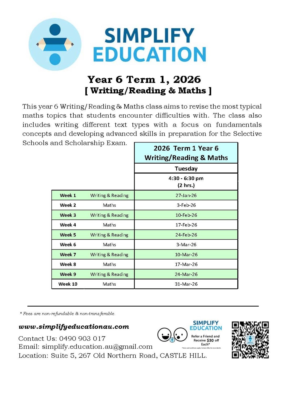 This Year 6 Writing & Maths class aims to revise the most typical maths topics that students encounter difficulties with. The class also includes writing different text types with a focus on fundamentals concepts and developing advanced skills in preparation for the Selective Schools and Scholarship Exam.
